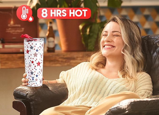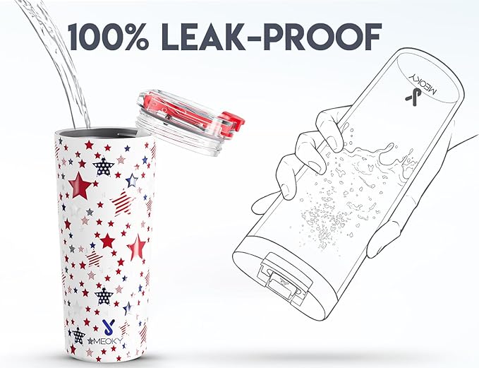 Meoky 24 oz Travel Coffee Mug with Leak-proof Lid, Stainless Steel Insulated Coffee Tumbler, Keeps Hot for 8 Hours or Cold for 24 Hours, Fits in Car Cup Holder (Star)