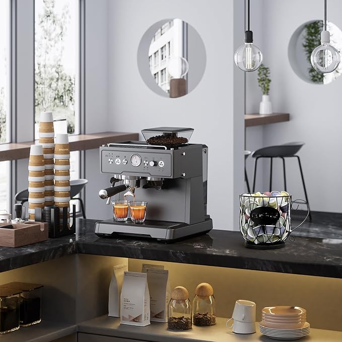 - ATTRACTIVE VINTAGE DECOR: Give your coffee bar a stylish upgrade with our coffee pod holder, crafted with frosted iron wire and rustic black wood panels for a touch of elegance. Ideal for any countertop in the kitchen or office