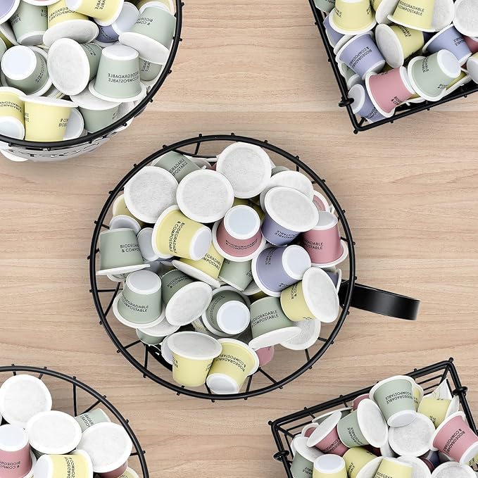 - MULTIPURPOSE BASKET: This round k cup storage has a spacious 9" X 6.1" X 6.1" size, capable of storing enough K cups to last an entire week. Not just for coffee pods, this versatile organizer can also hold tea bags, sugar packets, and other small items, making it a convenient storage solution for your kitchen, office, or even your desktop