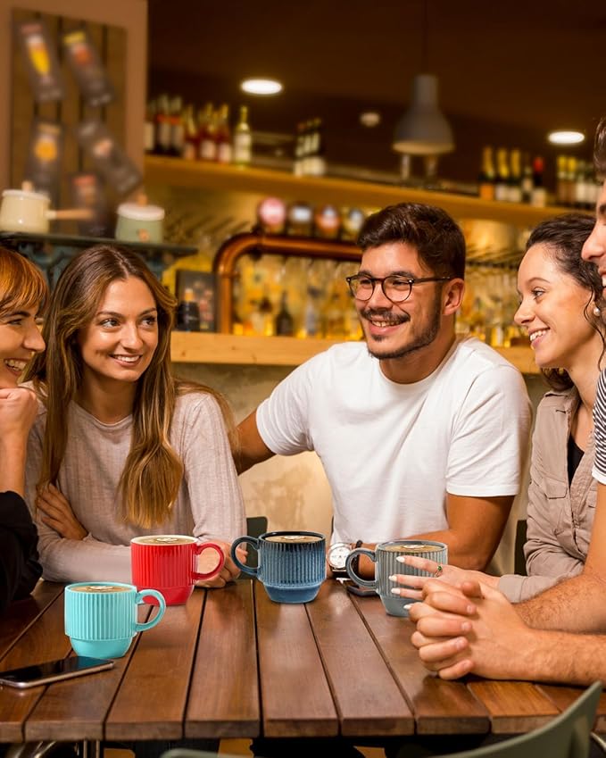 - Stunning Ribbed Design: This set of coffee mugs features a vertical striped embossed pattern for a great touch, durable coffee mugs with fashion unique style have a wonderful feel in hand, artistic shape make an amazing presentation on your table