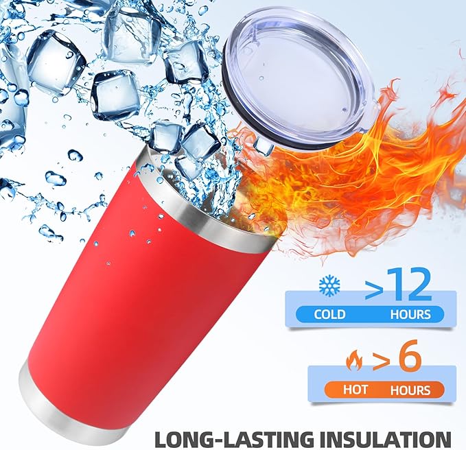 Volhoply 20oz Stainless Steel Tumbler with Lid and Straw Bulk 12 Pack,Double Wall Insulated Travel Iced Coffee Mug Fits Cup holder,Powder Coated Cups for Hot/Cold Drinks,Gifts for Women(Red,12 Set)