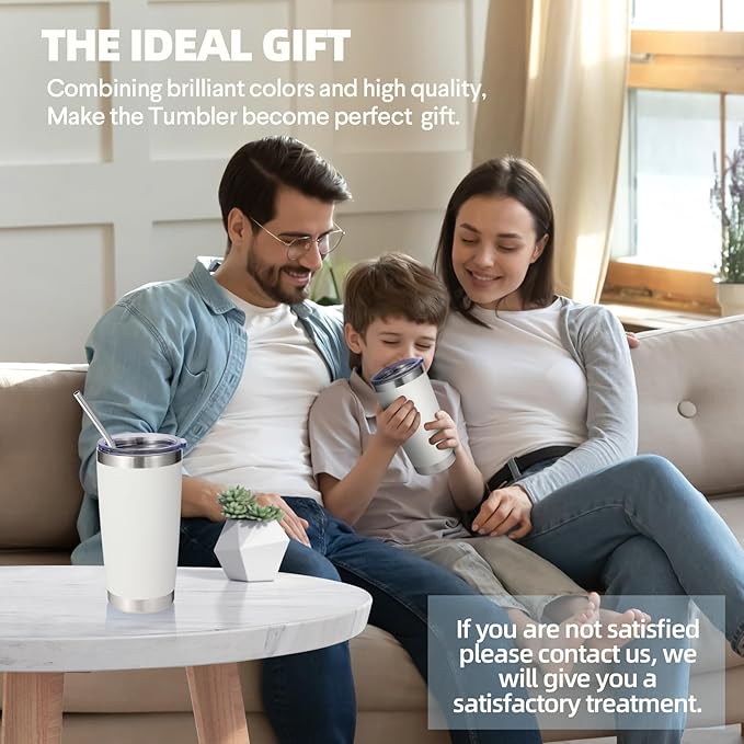 Volhoply 20oz Stainless Steel Tumbler with Lid and Straw Bulk 12 Pack,Double Wall Insulated Travel Iced Coffee Mug Fits Cup holder,Powder Coated Cups for Hot/Cold Drinks,Christmas Gifts(White,12 Set)