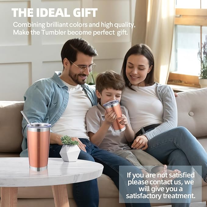 Volhoply 20oz Stainless Steel Tumbler with Lid and Straw,Double Wall Insulated Travel Iced Coffee Mug Fits Cup holder,Powder Coated Cups for Hot and Cold Drinks,Gifts for Women Men(Rose Gold,1 Set)