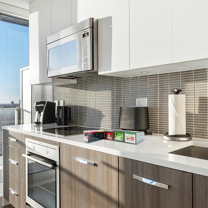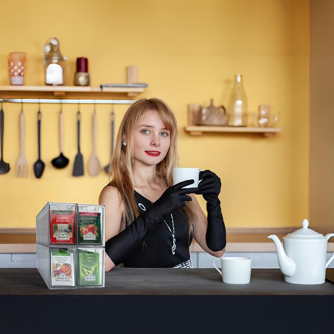 - The clear design ensures the visibility of stored items, creating a clutter-free and well-organized kitchen. Easier to locate and select your preferred tea bag. Enjoy the convenience of having everything put together in its place with these clear stackable storage drawers
