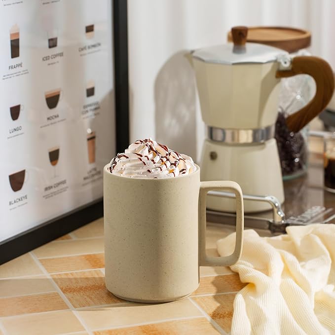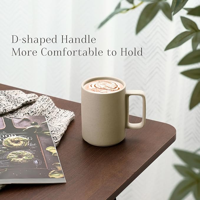 E-liu Porcelain Tea Mugs Coffee Mug Set, Large 15 Ounces Cups for Coffee, Tea, Cocoa, and Mulled Drinks, Set of 6, Unglazed (Natural)