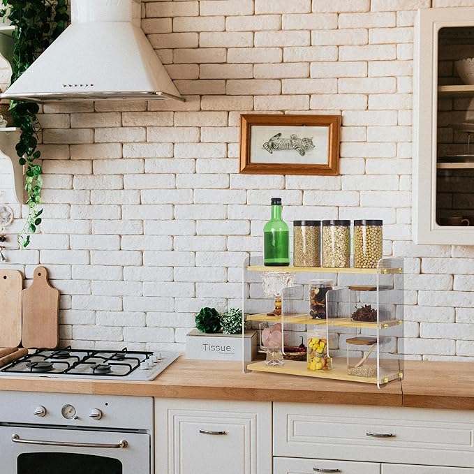 - Stylish Design: Featuring wavy acrylic side panels and a natural wood board. The sturdy construction ensures that it can hold the weight of multiple mugs without wobbling or tipping. this organizer presents an aesthetically pleasing texture, ideal for coffee bar enthusiasts and those who love to decorate their spaces.