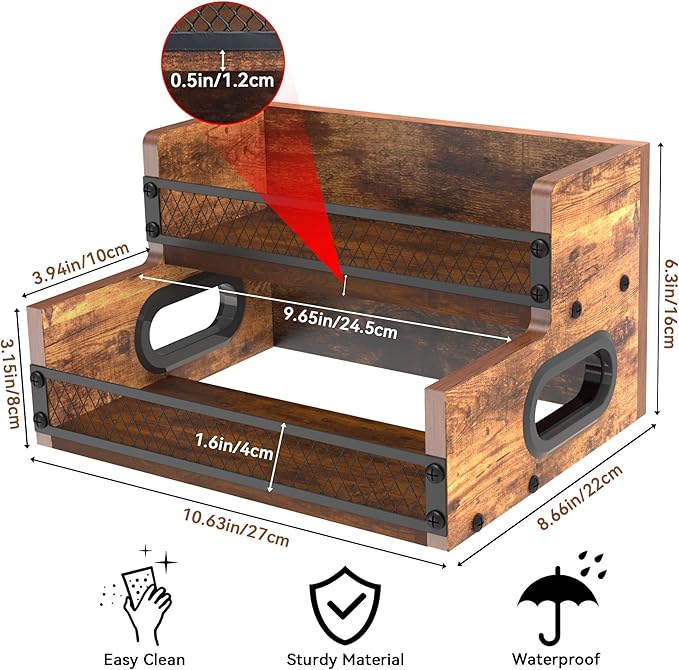 - SAVE SPACE: Our liquor organizer measures 10.63" x 8.66" x 6.3", each step width of 3.94", and can hold up to 6 bottles coffee syrup. The 2 tier stepped design allows you to display different wines in the bar stand for liquor, so that you can distinguish and find them quickly, keeping your space neat and organized