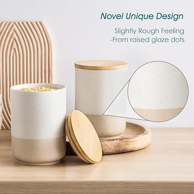 vancasso Sabine Large Ceramic Canister Set with Airtight Wood Lids - 2-Piece Kitchen Food Storage Jars for Flour, Sugar, Coffee & Tea (74 oz Each) - Big Capacity Countertop Jars
