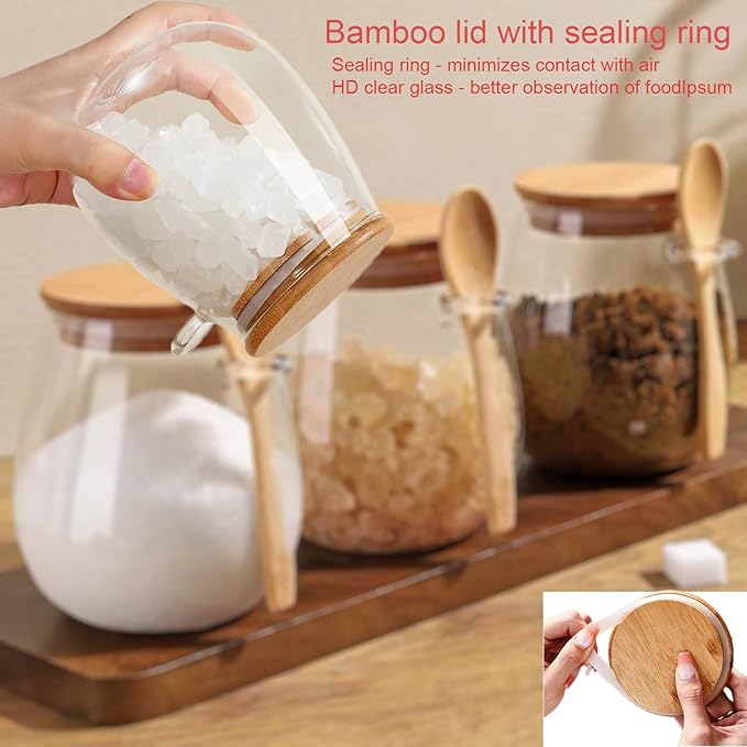 - Function: Very suitable for storing and displaying coffee beans, tea, biscuits, candy, nuts, oats, jam, dried fruit, beans, spices, sugar, salt and other snacks and food. High-definition transparent glass sealed jar, you can clearly see the food, to observe the food surplus.