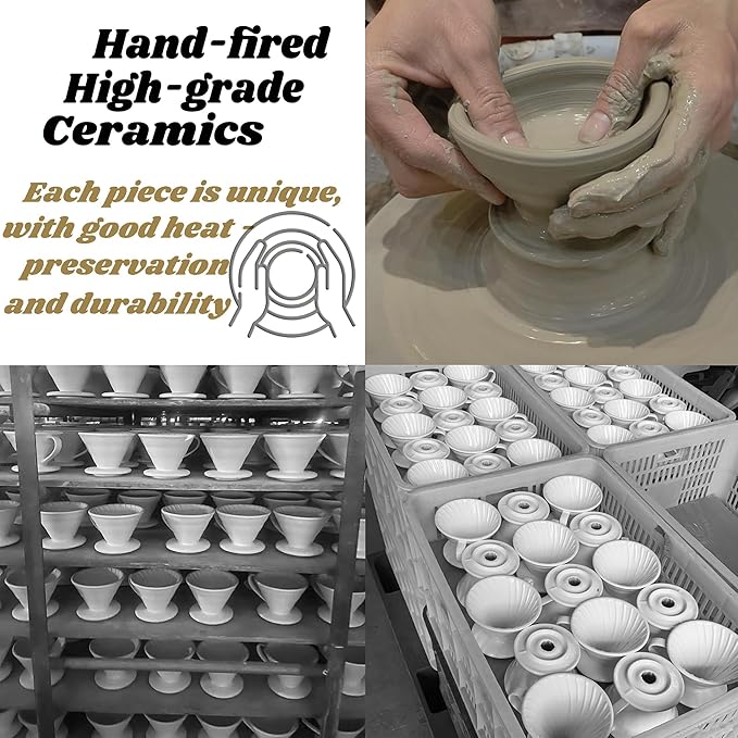 - ☕【Heat-resistant Ceramic】 Crafted from high temperature premium ceramic, with good heat preservation and durability, prevents heat loss during brewing compared to a stainless steel or plastic filter. Porcelain does not absorb odors or pass on chemical taste into your brew.Its sleek finish complements any kitchen, office, or cafe decor, blending functionality with minimalist style.
