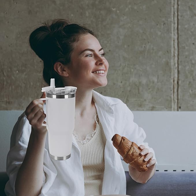 • Tumbler with handle:The welded handle provides a firm grip on your drink. It's large enough for anyone to hold easily, allowing you to carry the tumbler around and take a sip with one hand.