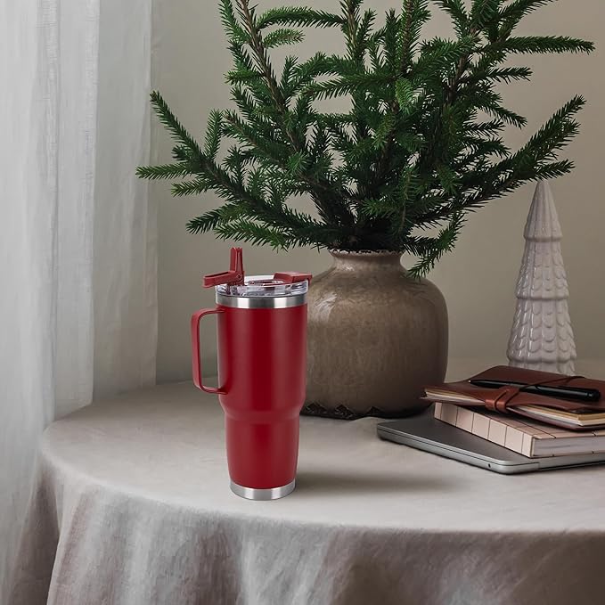 • Tumbler with handle:The welded handle provides a firm grip on your drink. It's large enough for anyone to hold easily, allowing you to carry the tumbler around and take a sip with one hand.