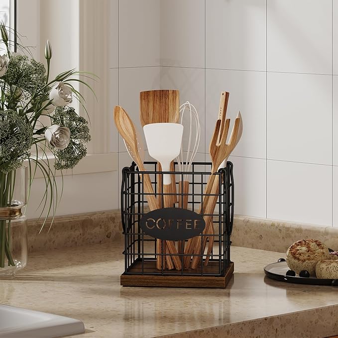 - Unique Design: This Coffee Pods Storage Organizer adds a handle design on the basis of frosted iron wire and brown wood panel. It adds a retro texture to your coffee bar while enhancing convenience and practicality. The basket is easy to clean, but we recommend hand washing only.