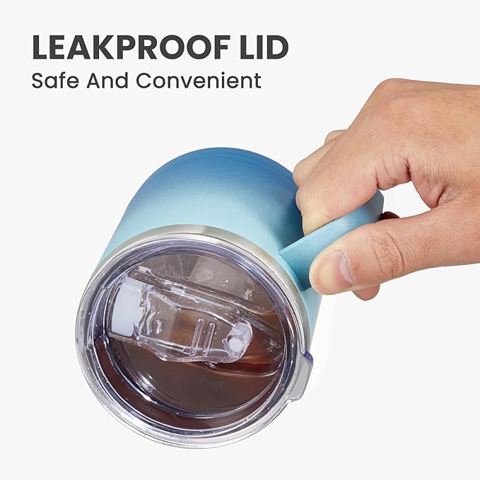 MEWAY 12oz Coffee Mug With Handle 2 Pack Bulk,Stainless Steel Insulated Travel Tumblers With Sliding Lid,Double Wall Vacuum Camping Cup for Hot & Cold Drinks Tea (Bubble Gum&Blue Waves,Set of 2)