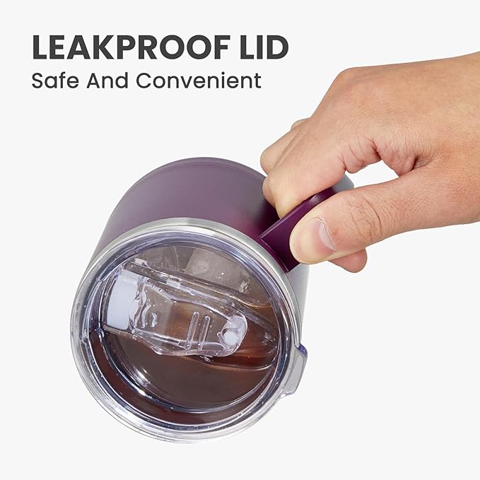 MEWAY 12oz Coffee Mug With Handle 2 Pack Bulk,Stainless Steel Insulated Travel Tumblers With Sliding Lid,Double Wall Vacuum Camping Cup for Hot & Cold Drinks Tea (Forest Green&Plum,Set of 2)