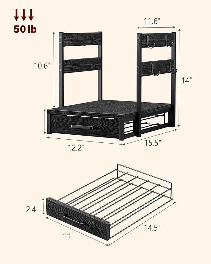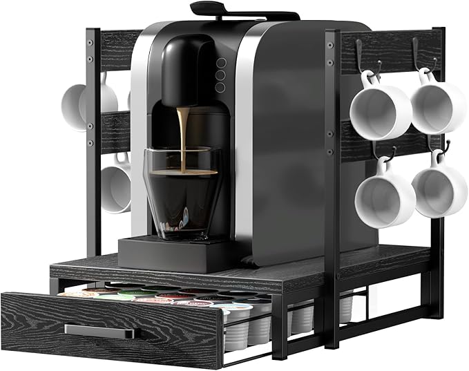 Evermagin Coffee Pod Drawer for K Cup, 35 Pods K-Cup Holder Organizer with Cup Holder, Durable Coffee Maker Stand with Storage Drawer, Black