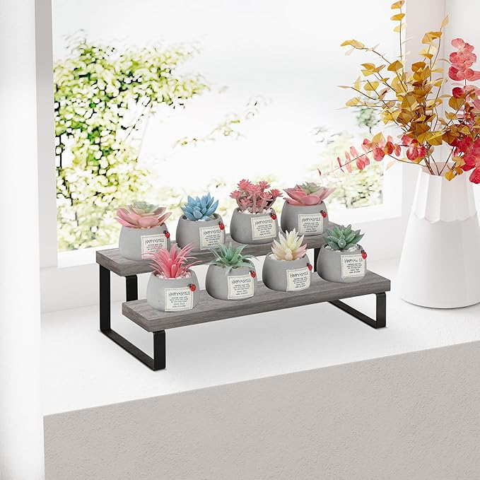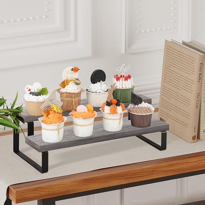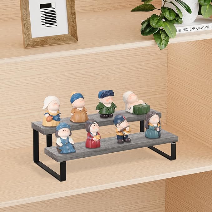 - Convenient Design: The stepped design makes efficient use of your counter space. This wooden display riser is a great idea for displaying toy figurines in cabinets, celebrating party desserts, and cosmetics on the dresser. The raised tiers help to create an eye-catching feature for your items.