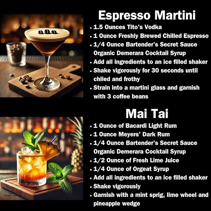 - Versatile for Bar & Kitchen – Ideal in bourbon, rum, or tiki cocktails, espresso drinks, iced tea, cookies, or sauces. A refined sweetener for everyday use.
