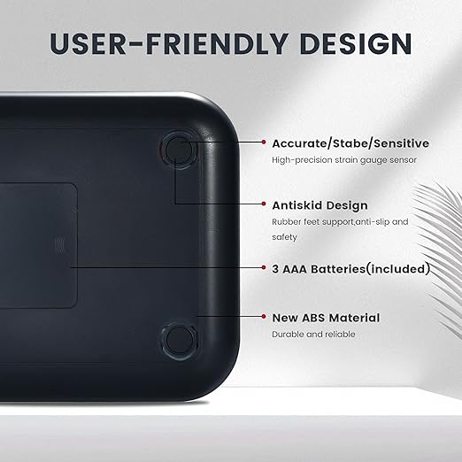 - USER-FRIENDLY TOUCHSCREEN & PREMIUM BUILD: Large color display with backlight provides clear visibility in any lighting. Responsive touch controls (power/tare/unit) simplify operation. Crafted with scratch-resistant tempered glass and anti-slip rubber base for stability, while lightweight ABS housing ensures easy cleaning and storage