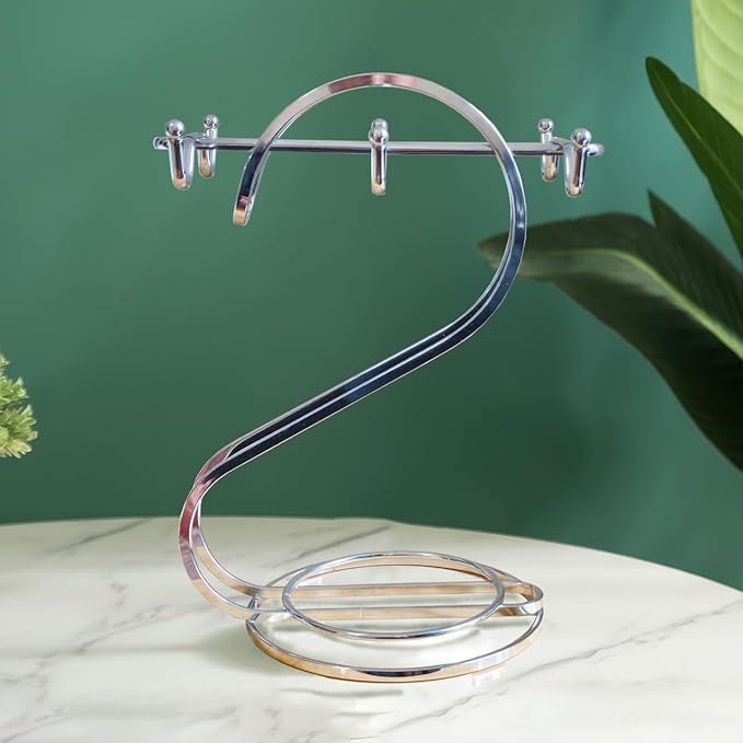 Coffee Mug Holder Metal,Mug TeaCups Holders Countertop,Coffee Mug Tea Cup Stand Storage Rack Tabletop Counter 6 Hooks(Silver)