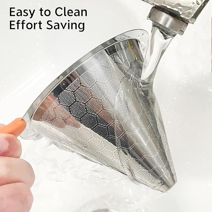 - 【Enhanced Coffee Flavor】The V-shape stainless steel pour over coffee filter can fully contact coffee powder with water, improving extraction efficiency, resulting in a richer taste, allowing you to enjoy a more rich coffee flavor. Brewing capacity: 1-4 cups, perfect as single serve pour over coffee dripper or small gatherings coffee maker.