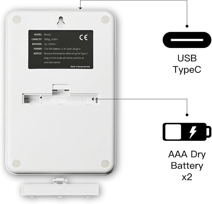 - Special Feature : Dual Power Options (USB-C or Battery), Dual Timer Modes (Count-up & countdown), Milk & Water ml Modes, Triple-Range Auto Precision (0.1g, 0.5g, and 1g for different weight ranges), Ultra-Slim & Travel-Ready Dual Power Options (USB-C or Battery), Dual Timer Modes (Count-up & countdown), Milk & Water ml Modes, Triple-Range Auto Preci… See more