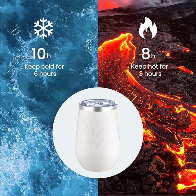 - [Thermal Insulation & Included Straw:]The double-wall wine tumbler uses a double-layer vacuum insulation process to maintain your drink's temperature for an extended period. It keeps your water, wine, or cocktail icy cold for up to 10 hours and your coffee or tea hot for over 8 hours. Additionally, the straw hole at the top of the cup with a slider and just because of the included straws, which make your drinking more convenient no matter leisure or occupied