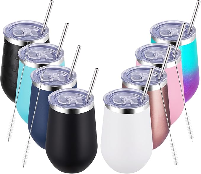 - [Package included:]1*12oz wine tumbler,1*splash proof cover with hole, 1*unbreakable steel straw, 1*straw brush,and 1*beautiful box.YOUR 100% SATISFACTION IS OUR TOP NOTCH! we walk the extra mile to ensure our customers' complete satisfaction. If you are not positively thrilled with our tumblers, just let us know and we will try to give you an satisfied reply
