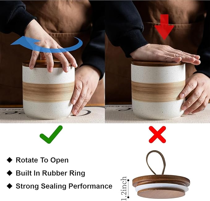 - Rope Cover Design: Each food storage container is equipped with a wooden lid, which has strong sealing and effectively isolates air, moisture, and odors, keeping food dry and fresh, and extending the shelf life of food. There is a unique rope design on the lid, which is easy to open without losing its beauty