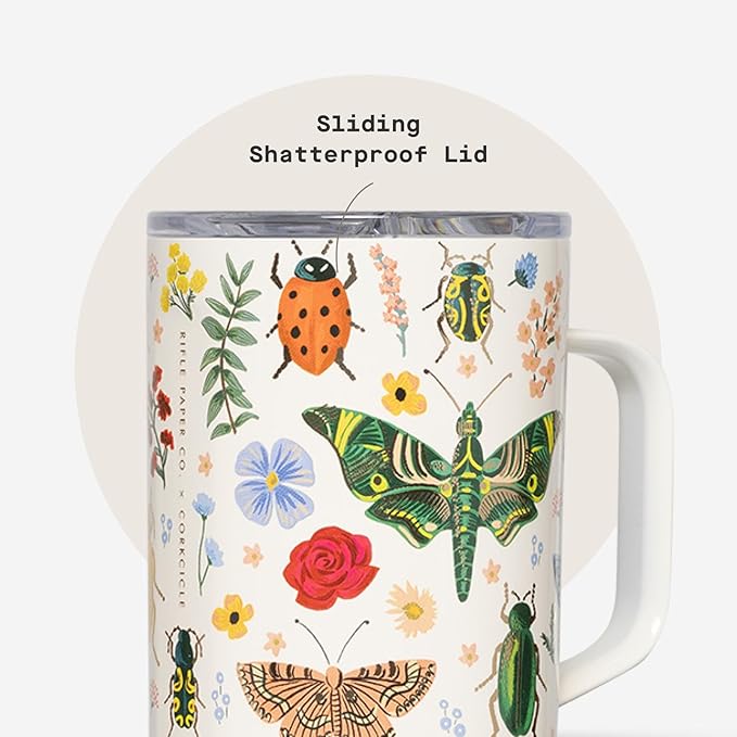 Corkcicle x Rifle Paper Co. Triple Insulated Coffee Mug with Lid & Handle - Keeps Beverages Hot for 3+ Hours - Gift for Mom - Great for Mother's Day or Christmas - 16 oz - Curio Cream