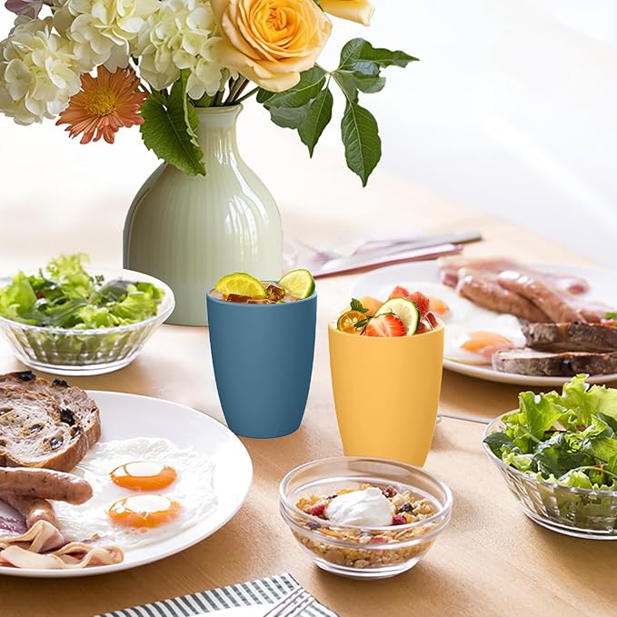 - THE IDEA GIFT: Our alternative to plastic cups features a classic smooth design, minimalist yet stylish. Each set comes with adorable and exquisite packaging, including four 12-ounce cups in different colors. It’s the perfect gift for children, housewarming parties, birthday surprises, Christmas, weddings, and more!