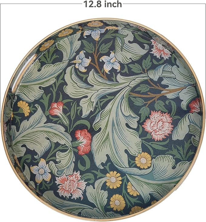 - πΌγ Preferred material γ This tea trays for serving made of thickened material, it is plastic, with smooth surface and convenient cleaning, round tray with vintage printing design
