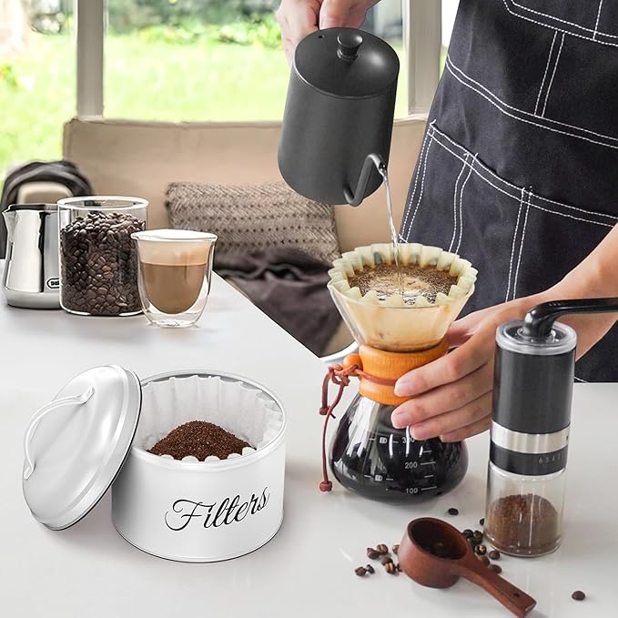 - Retaining Design: Measuring 6.2" in diameter and 6" high, this round and cone coffee filter holder is designed to maintain the shape of your coffee filters. Its stylish design adds a touch of elegance to your home or coffee bar, making it a functional and attractive coffee storage container
