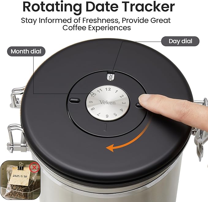 - 【Reason to Choose Veken】Crafted from durable 304 stainless steel, Veken coffee canisters put forth our strength to preserve more freshness of each coffee bean. Every detail is designed with your coffee experience in mind. Choose Veken for reliable, elegant coffee storage that enhances your daily coffee experience.