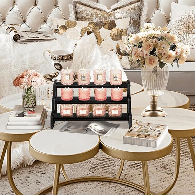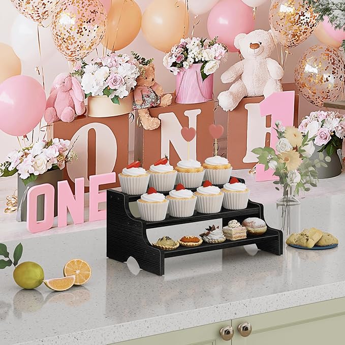 - VERSATILE STORAGE: The 3-step display stand is perfect for organizing and displaying a variety of items. Use it to showcase your collection of figurines in a cupboard, display makeup on your dresser, arrange cupcakes on the dining table, or store spice bottles, jars, seasonings, and baking supplies in the kitchen pantry or cabinet.