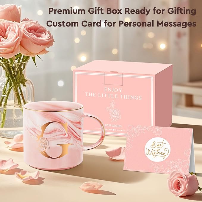 - Personalized Gifts for Women:Handcrafted with premium biodegradable clay & zero lead/cadmium, and with premium marble glaze & gold foil accents creates,this 12oz ceramic coffee mug customized coffee cup combines safety with sophistication. "Her initials in gold" design becomes cherished family heirloom,Choose from 26 alphabet letters to create truly Birthday Gifts, Christmas gifts,Valentines Day Gifts, Mothers Day Gifts.