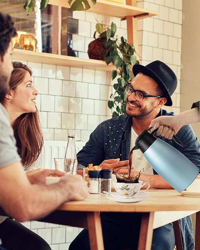 70 OZ Updated Thermal Coffee Carafe for keeping hot, 2 PCS Carafes for hot liquid, Insulated Coffee Carafe Stainless Steel Vacuum Thermal Pot for Coffee, Hot Water,Keep Hot 12 Hours (Blue+Blue)
