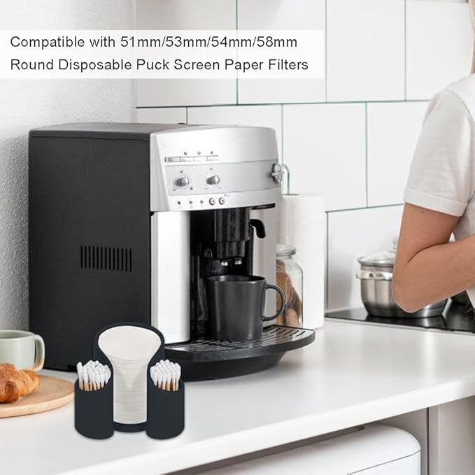 - 1. User - friendly Design Our coffee filter paper holder features design that makes it incredibly easy to access the round disposable paper filters (50mm - 60mm). No more fumbling around; you can quickly grab a filter whenever you're ready to brew your perfect cup of coffee.