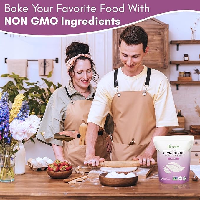 Durelife 100% Pure stevia extract sweetener | No Erythritol, NON-GMO Project Verified, No Fillers, Zero Calorie Sugar Substitute | No Aftertaste | Micro-Spoon Included (16 Ounce (Pack of 1))