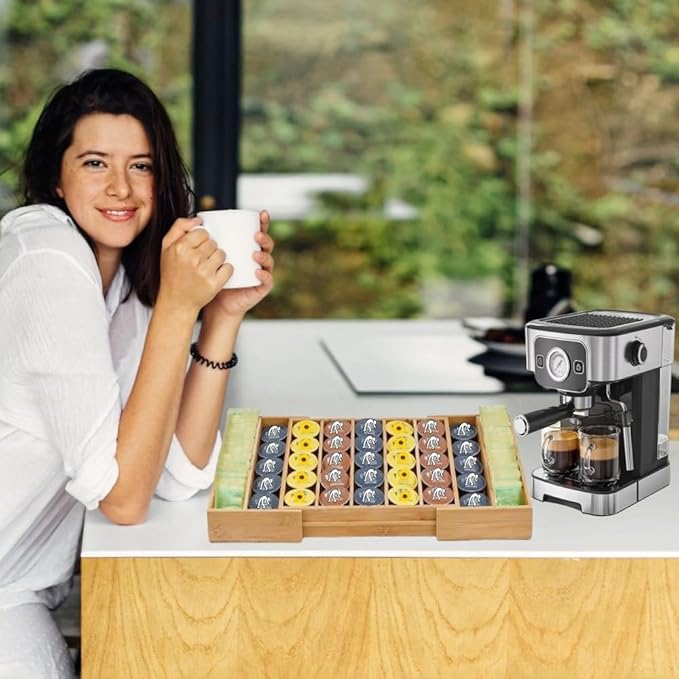 - 【High quality materials】 UoeRing The coffee box drawer organizer is made of 100% natural bamboo, with a beautiful appearance and durability. The K cup holder in the kitchen is equipped with 6 anti slip pads to protect your furniture from scratches.