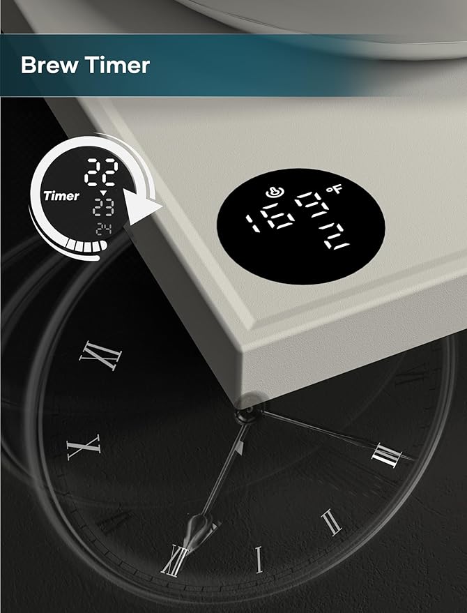 - ±1℉ Temperature Accuracy - The intelligent base's built-in temperature control program. The program will adjust the heating power when the water temp approaches the desired temp according the temp probe detects the temp change.