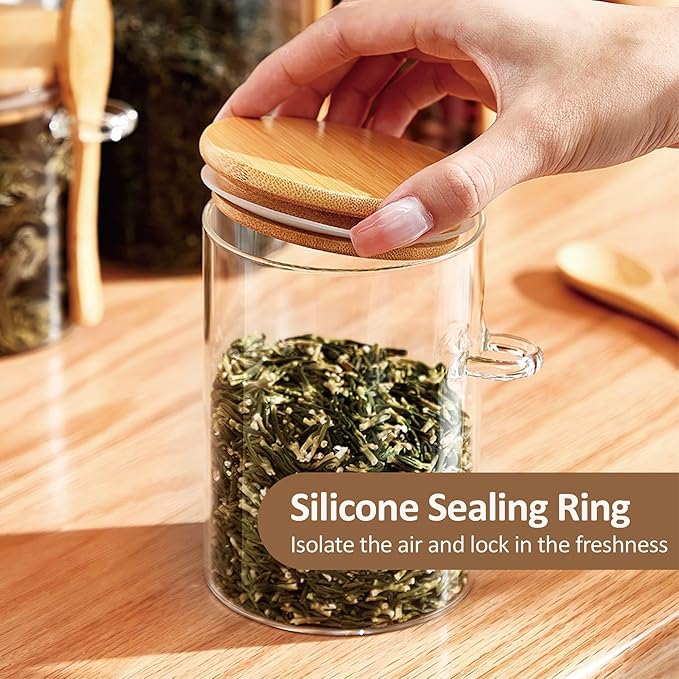 - SEALED BAMBOO LID: Each wooden lid has a silicone gasket inside and comes with a spoon, each glass container can improve the sealing performance. Keep food fresh, not easy to leak, more convenient to use