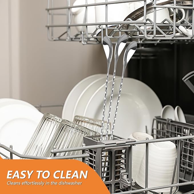 - Easy to Clean: The mirror-polished surface of the bar spoons resists stains and can be placed directly in the dishwasher after use, saving time on cleanup. They're perfect for home kitchens, bars, cafes, or parties