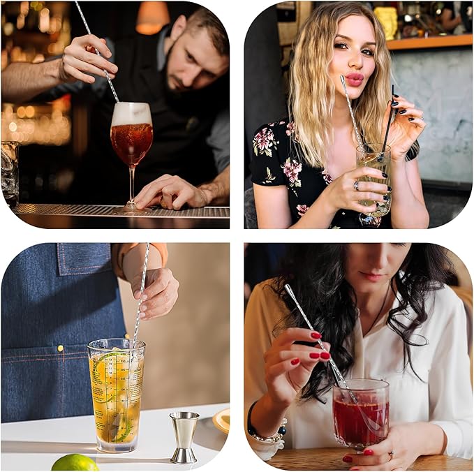 - Spiral Design: The spiral design of the ice tea spoons enhances grip and control, providing increased comfort and ensuring smoother, more stable mixing, making professional cocktail stirring effortless
