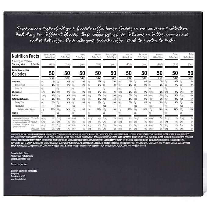 Thoughtfully Gourmet, Coffee Syrup Sampler Gift Set, Syrup Flavors Include Salted Caramel, Vanilla, Mocha, Hazelnut, Pumpkin Spice, & More, Set of 10