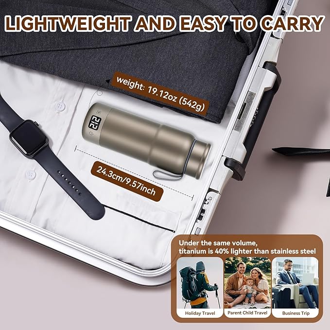 - 【Premium Aerospace Titanium】Our inner liner is crafted from premium titanium — significantly more inert than 304/316 steel. Renowned for its exceptional strength-to-weight ratio, heat resistance, and corrosion resistance, titanium's naturally inert properties preserve your beverages' true, original taste. This makes it the ultimate choice for maintaining flavor integrity in coffee, tea, infant formula, and specialty drinks.