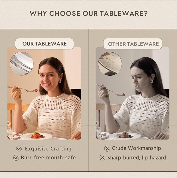 - CLASSIC DESIGN: Mirror finish, natural and elegant design. It add more elegance and class to your table. It has a classic design allows for mix and match with your existing flatware