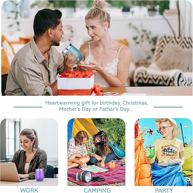- Suitable for various Occasions: Whether you're at home, in the office, at the beach, or at a party, our wine tumbler with lid are perfectly suited for enjoying coffee, tea, juice, cocktails, and other beverages. Insulated wine tumblers also make ideal gifts for birthdays, holidays, weddings, and other occasions, perfect for friends, family, and colleagues.