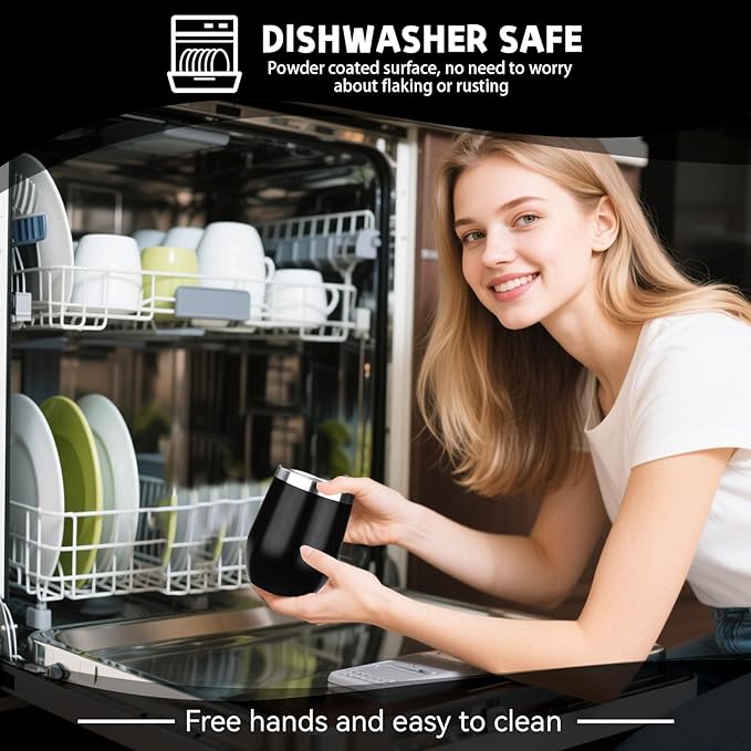 - BPA-free Lids and Straws: The camping wine glasses come with BPA-free lids and additional sealing rings. You don't have to worry about spills when drinking coffee, milk, or juice. The wide-mouth design makes drinking and cleaning more convenient and is safe for dishwasher use. However, to better protect the coating, hand washing is recommended. Additionally, the drinking hole at the top makes drinking more convenient.