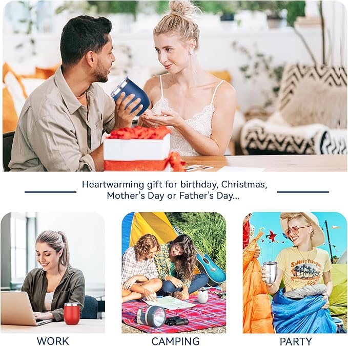 - Suitable for various Occasions: Whether you're at home, in the office, at the beach, or at a party, our wine tumbler with lid are perfectly suited for enjoying coffee, tea, juice, cocktails, and other beverages. Insulated wine tumblers also make ideal gifts for birthdays, holidays, weddings, and other occasions, perfect for friends, family, and colleagues.